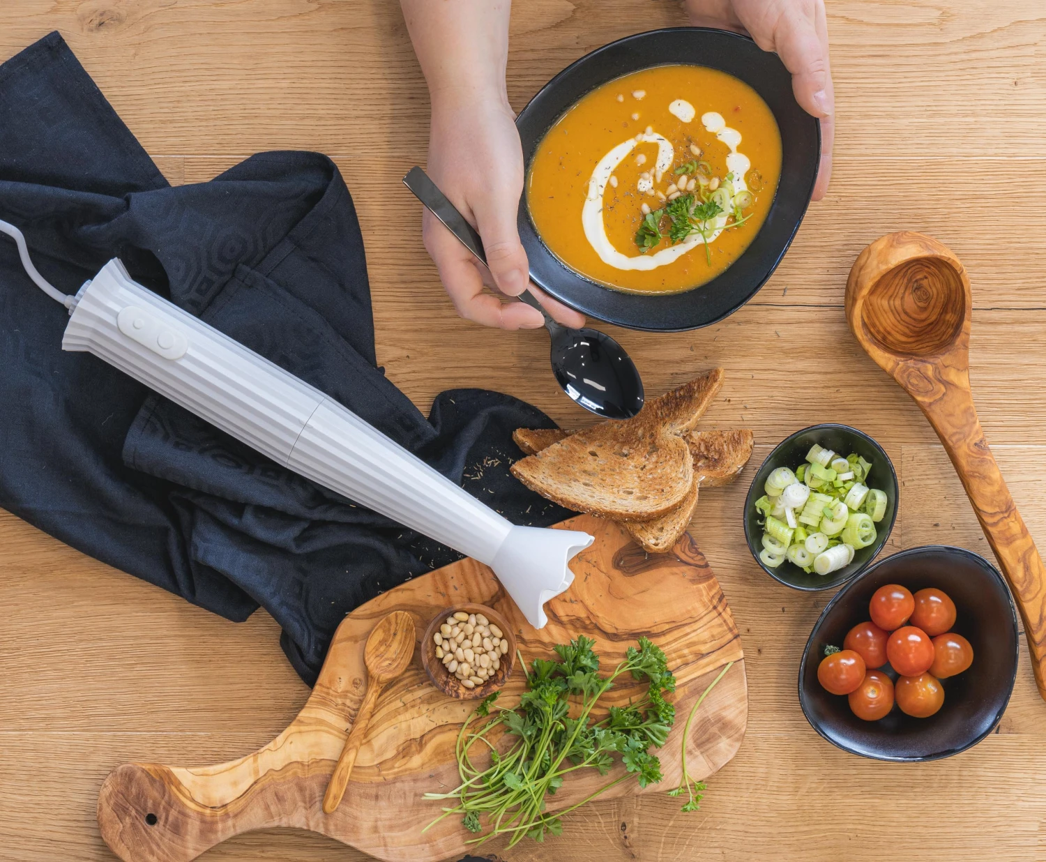 Deze staafmixer hoort bij de Alessi Plissé collectie en is ontworpen door designer Michele De Lucchi. Zijn ontwerp is gebaseerd op de geplooide jurk uit de Franse Haute Couture mode. De structuur met plooien veranderen het apparaat in een driedimensionale vorm. Door het fascinerende ontwerp is het apparaat niet alleen handig voor gebruik, maar ook een klein onderdeel in je interieur. Deze staafmixer kan je normaal en versneld bedienen. De blenderkan heeft een inhoud van 700 ml en kan worden gereinigd in de vaatwasser. Deze staafmixer is ook te verkrijgen in een compleet pakket, deze is inclusief mengbeker, garde en unversele hakmolen.