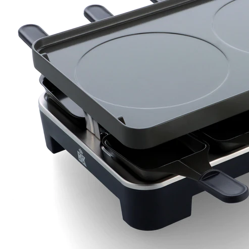 Het gourmetstel is ontworpen om samen aan tafel te genieten. Het multifunctionele toestel is makkelijk in gebruik en heeft een PFAS-vrije keramische antiaanbaklaag. Dankzij de omkeerbare bakplaten in gegoten aluminium kan je grillen én pannenkoeken bakken. De losse onderdelen van het gourmetstel – de bakplaat, 8 pannetjes en spatels – zijn vaatwasserbestendig. De gourmet is dus bijzonder makkelijk te onderhouden. Met de regelbare thermostaat stel je de temperatuur van het gourmetstel in naargelang het gerecht dat je wil bereiden. Dit gourmetstel brengt gezelligheid aan tafel!