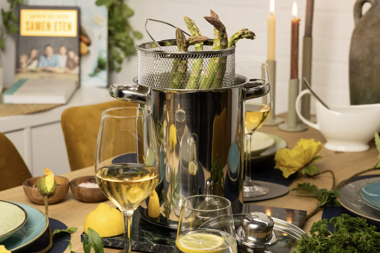 Aspergepan RVS is gemaakt van hoogwaardig roestvrij staal en heeft twee handgrepen, een deksel en een aspergemandje. Deze aspergepan is ook zeer geschikt om pasta mee te koken en wordt geleverd met inzet. Het is geschikt voor zowel inductie als gas en heeft een stijlvol design!