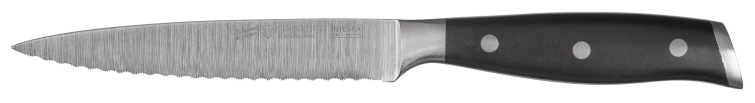 Diamant Sabatier staat bekend als een kwaliteitsmerk en is één van de meest gebruikte messenmerken in de horeca. Diamant Sabatier geeft door de strenge kwaliteitsnormen levenslange fabrieksgarantie op materiaal- en fabricagefouten. De Diamant Sabatier Integra serie is gemaakt zonder krop. Hierdoor is de gehele lengte van het lemmet na te scherpen. Wil je meer informatie over het X45CrMoV15 staal dat Diamant Sabatier gebruikt? Op onze informatiepagina vind je een uitgebreide uitleg over de soorten messenstaal die wij bij Cookinglife aanbieden.
