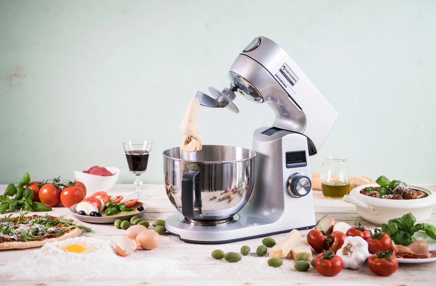 Haal Italië in huis met de MixMaster Combo van Espressions! De machine beschikt over een krachtige motor met een grote mengcapaciteit. De 12 traploos instelbare snelheden zorgen voor een passende snelheid per klus. De ingebouwde ‘slow-start’ zorgt ervoor dat inhoud niet uit de mengkom opspat. Wordt standaard geleverd inclusief een RVS voedselmolen t.w.v. €129,00, 4,5 liter RVS mengkom, schenkschild, kneedhaak, platte menghaak, draadgarde en flexiklopper. Optioneel bij te bestellen: de RVS pasta deegroller (1 stuk) en de RVS spaghetti-/tagliatellesnijder (set van 2st).