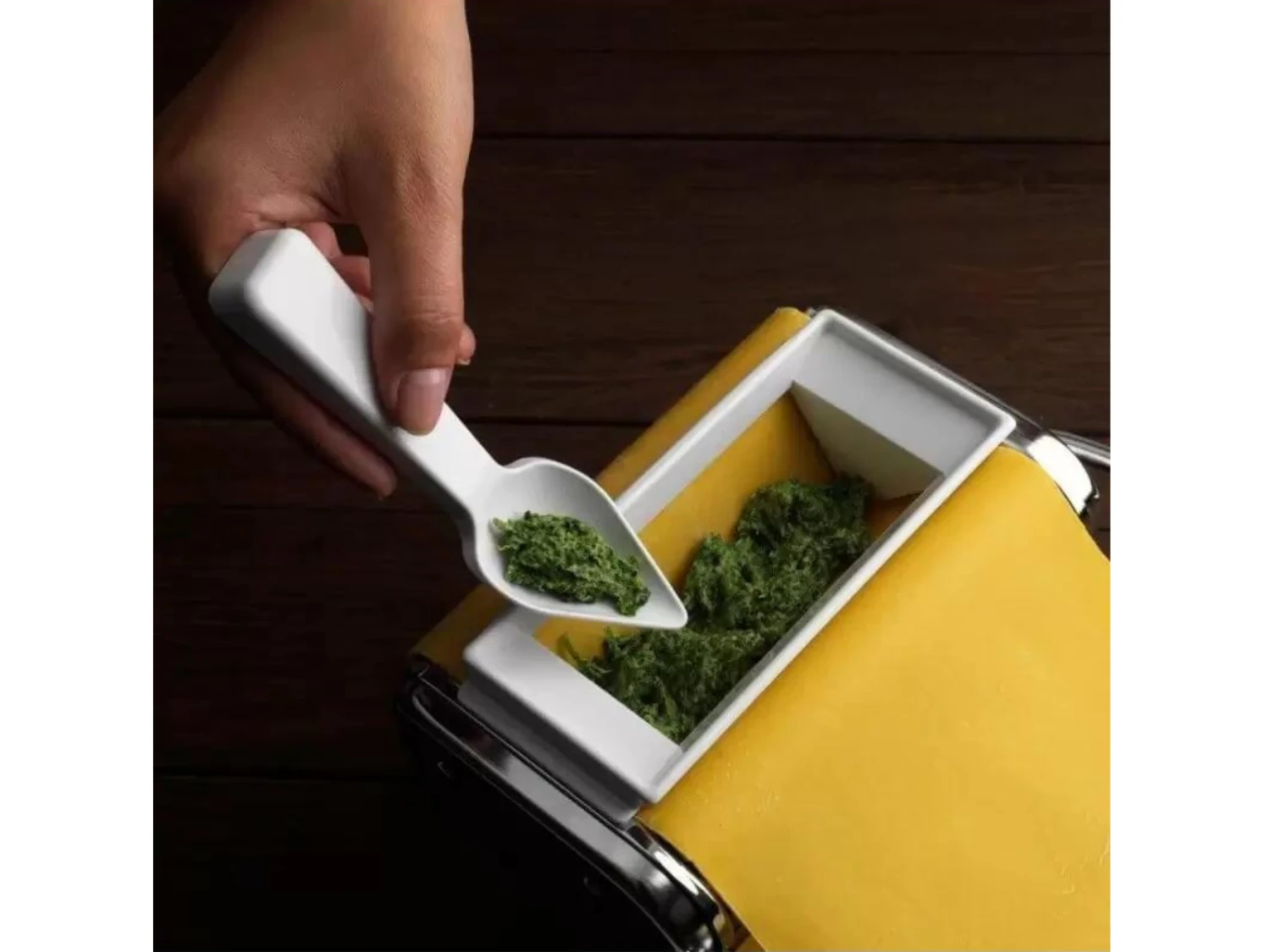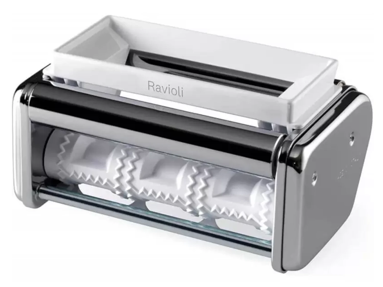 Dit opzetstuk is geschikt voor Ravioli, een pastasoort met een breedte van 45 mm. Het wordt aanbevolen om de Atlas 150 op stand 6 of 7 te zetten voor het beste resultaat. Je kan het opzetstuk alleen met de hand gebruiken. Een handige lepel met punt voor het vullen van de pastamachine wordt meegeleverd.
