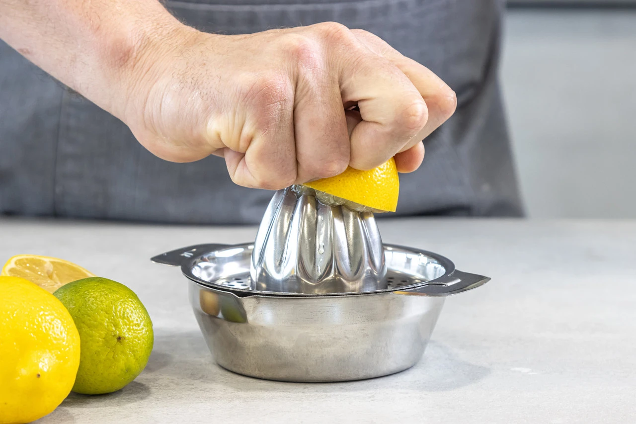 Pers allerlei citrus vruchten met de MasterClass citruspers. Pers citrusvruchten door de vrucht op de pers te drukken. Dan komt het sap van de vrucht los en druipt het zonder te knoeien in het opvangbakje. Klaar met persen? Schenk dan het sap via het schenktuitje in een glas of een andere kom. De pitjes en ander vruchtvlees wordt opgevangen door de filter, waardoor er allen sap in het opvangbakje zit. De breedte van de pers is 13 centimeter. Na gebruik kan de pers in de vaatwasser worden schoongemaakt.