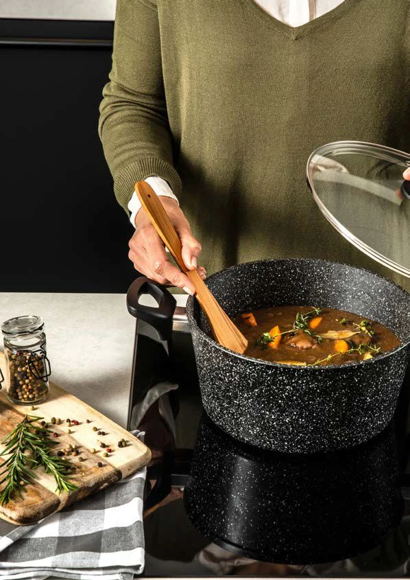 De pannen uit de Westinghouse Marble Collection zijn perfect voor in ieder huishouden! De pannen zijn voorzien van een innovatieve anti-aanbaklaag die 100% gegarandeerd vrij is van PFOA en andere schadelijke stoffen. Ze hebben een snelle en gelijkmatige warmteverdeling. Ook zijn de pannen gemakkelijk te reinigen in de vaatwasser en geschikt voor alle soorten warmtebronnen. Bij deze collectie heb je de keuze uit pannen met een zwarte of houten look handvat.